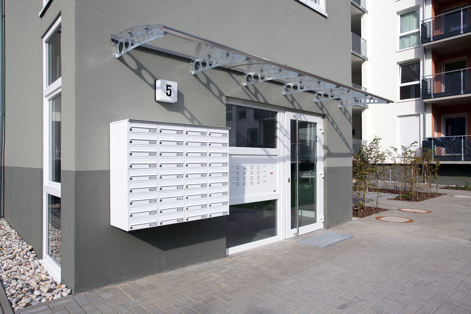Postkasseanlæg behøver ikke være kedelige, firkantet kasser, der skæmmer opgangen eller bygningen. Til ældre klassiske ejendomme kan et anlæg med afrundet ramme være en flot løsning.